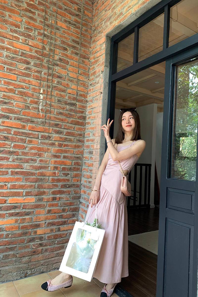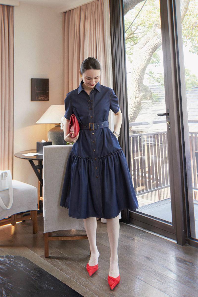 法式蓝色连衣裙夏天2025新款网红时尚小香风V领长裙