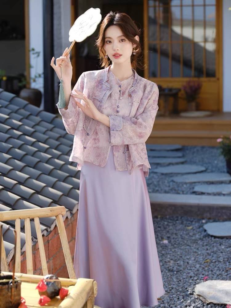 新中式改良成人礼礼服气质裙子提花国风盘扣收腰显瘦丝绒连衣裙女