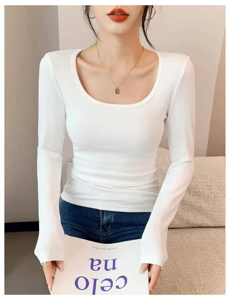 基础万能内搭打底衫女秋冬新款长袖T恤修身大领口方领德绒上衣服