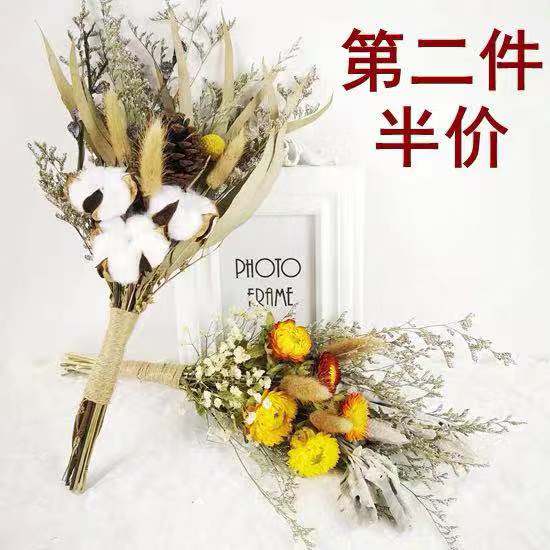 秋天多款干花混合搭配丰收寓意永生花花束组合含瓶整套家居摆件