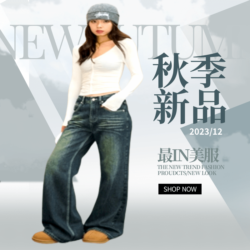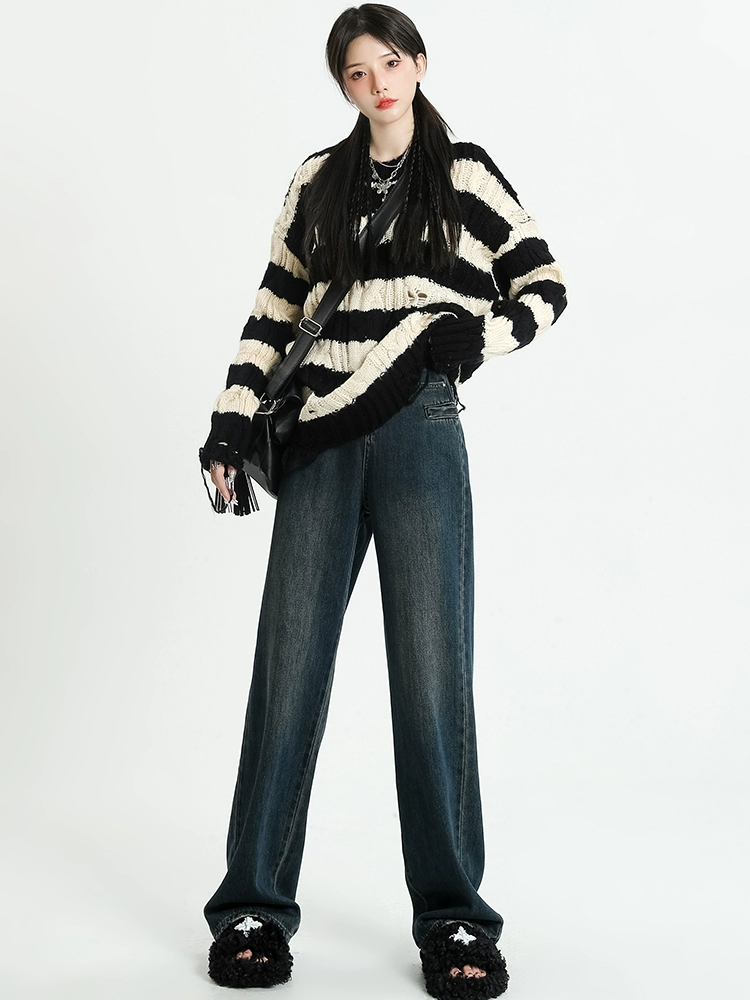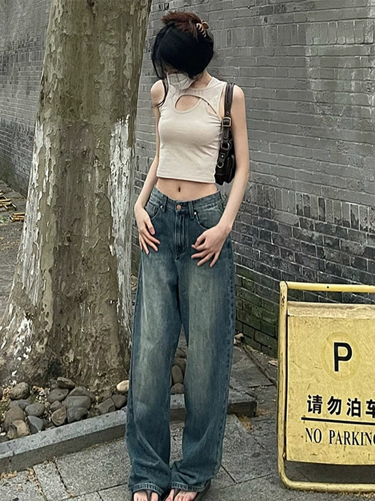纯棉阔腿牛仔裤女冬2023新款复古做旧直筒裤欧美ins拖地长裤