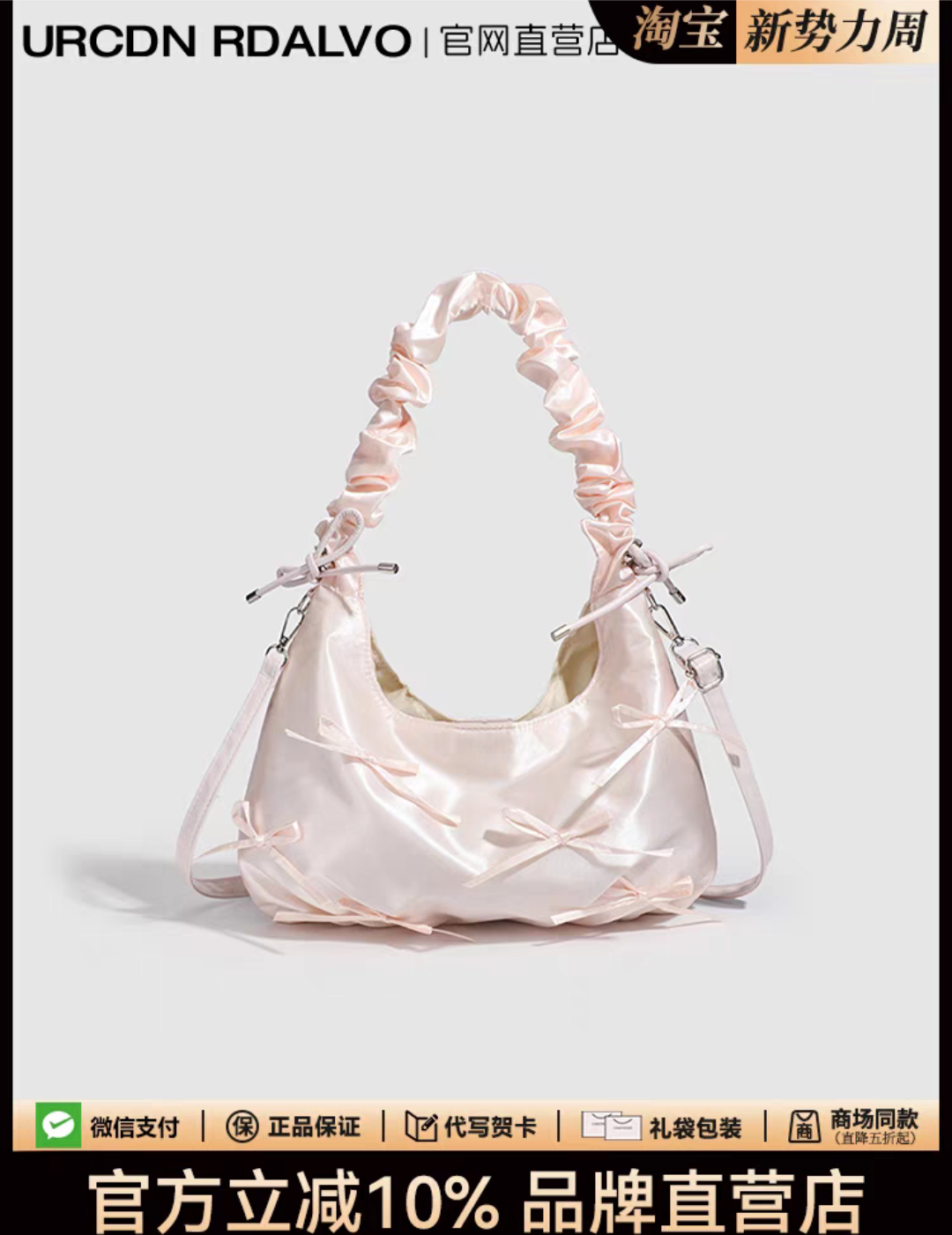 芭蕾风蝴蝶结新款潮百搭褶皱手提包 66.00 已售:0件