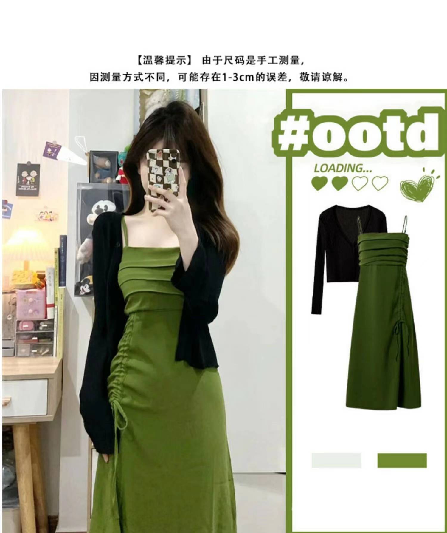 新款2022秋季甜辣风套装设计感小众长袖坎肩显瘦背带吊带群两件套