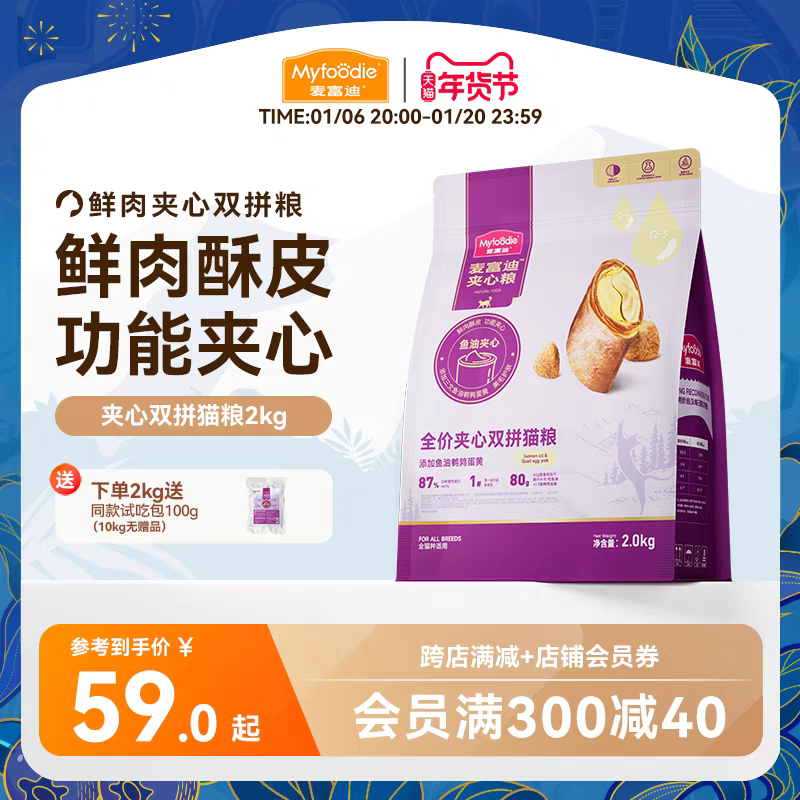 猫粮鲜肉夹心双拼猫粮高营养全猫种通用成幼猫老年猫粮2kg