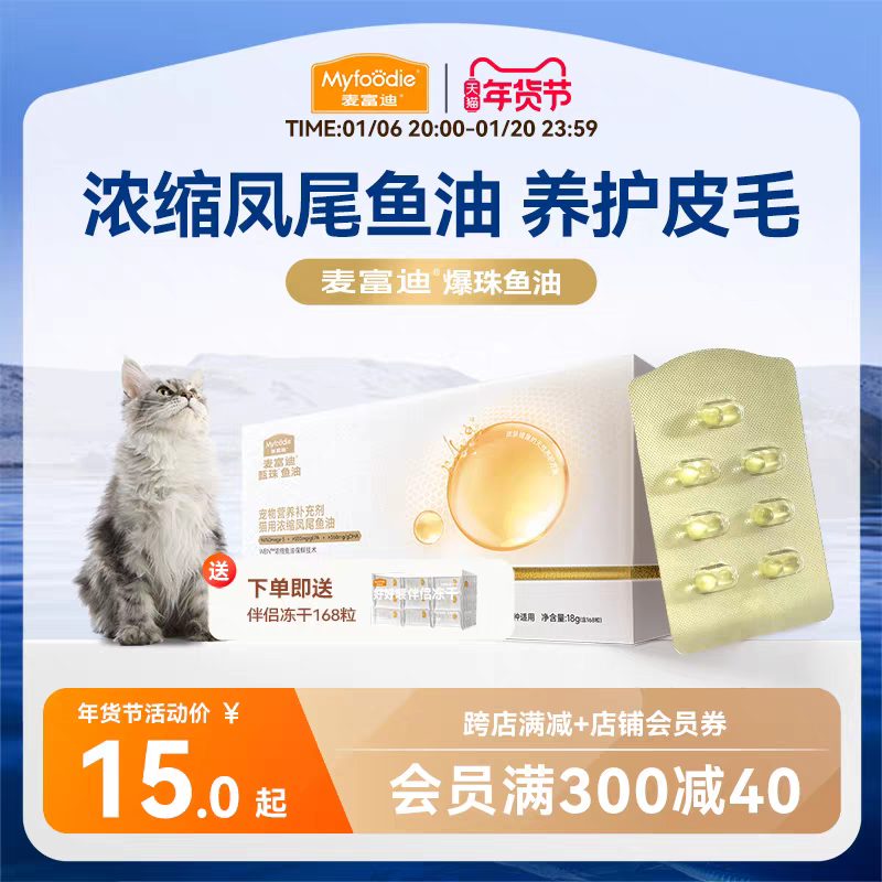 甄珠鱼油猫用爆珠浓缩凤尾鱼油磷虾油美毛护毛猫咪非卵磷脂
