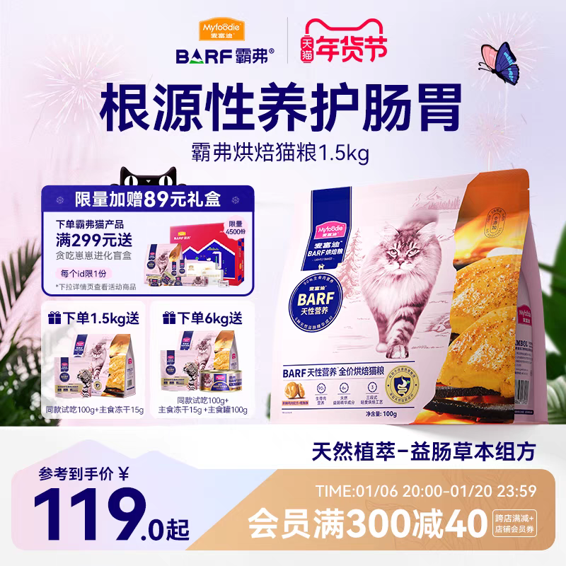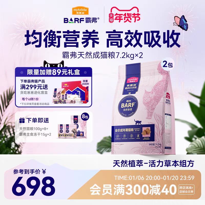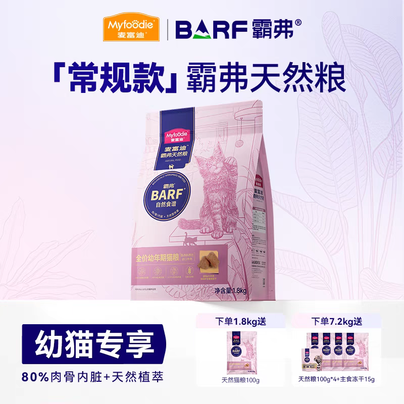 麦富迪barf霸弗天然粮成猫幼猫营养无谷高蛋白猫粮7.2kg*2囤货装