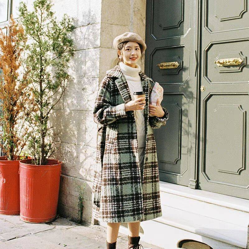 森系文艺复古中长款呢子大衣