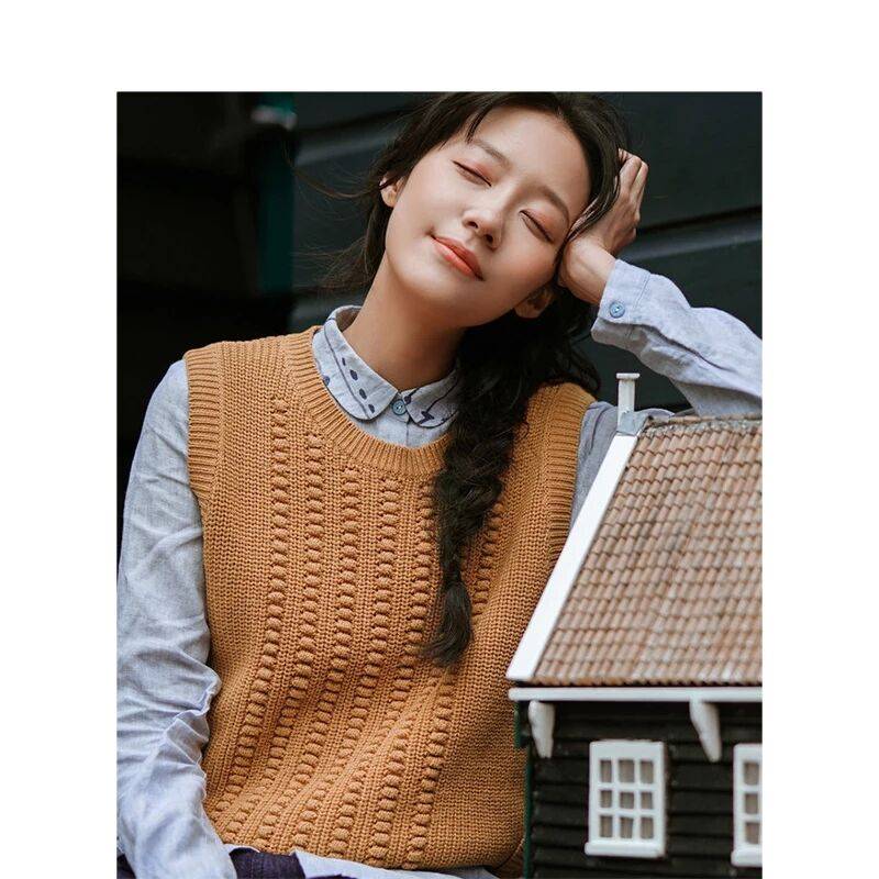抹茶loves2019初春新款文艺清新百搭圆领无袖毛衣背心女