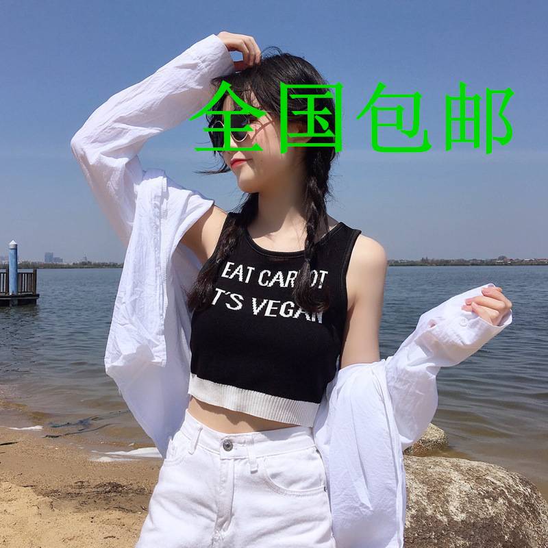 港味chic复古字母印花针织吊带背心女夏短款打底(包邮)