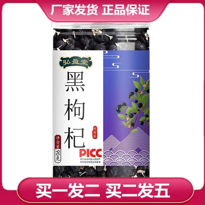 弘盈堂青海柴达木黑枸杞果90g罐装花茶叶罐装花草茶