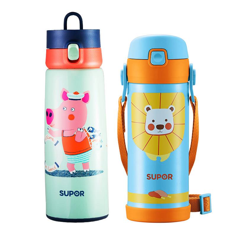 苏泊尔儿童保温杯带吸管水杯男女中小学生便携防摔大容量水壶杯子