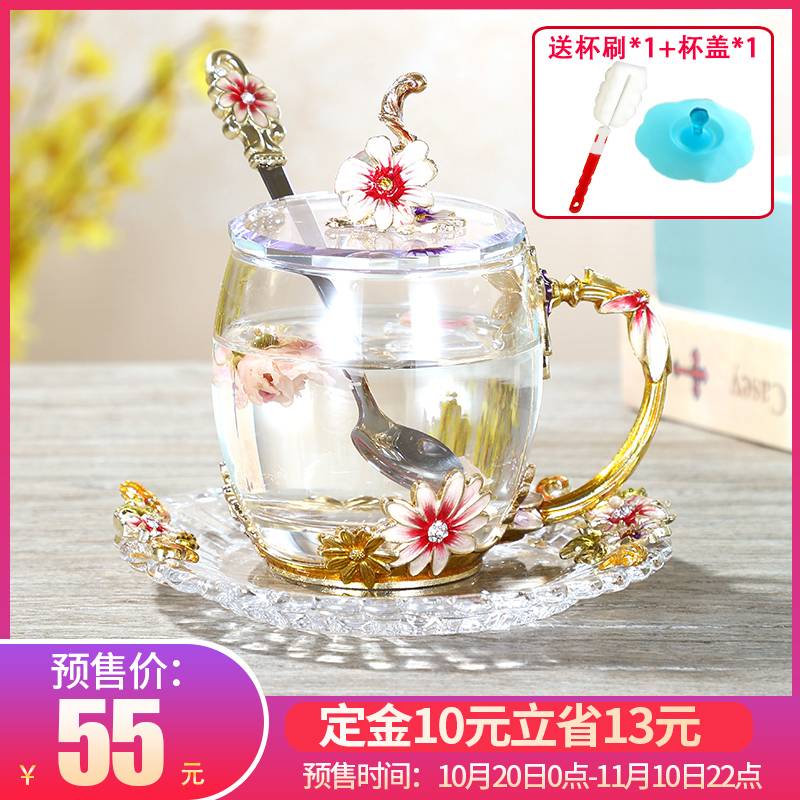 创意家用珐琅彩雏菊水杯套装无铅耐热玻璃花茶杯果汁杯子