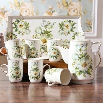 描金陶瓷冷水壶家用大容量耐热凉水壶花茶具咖啡茶具水杯水具套装