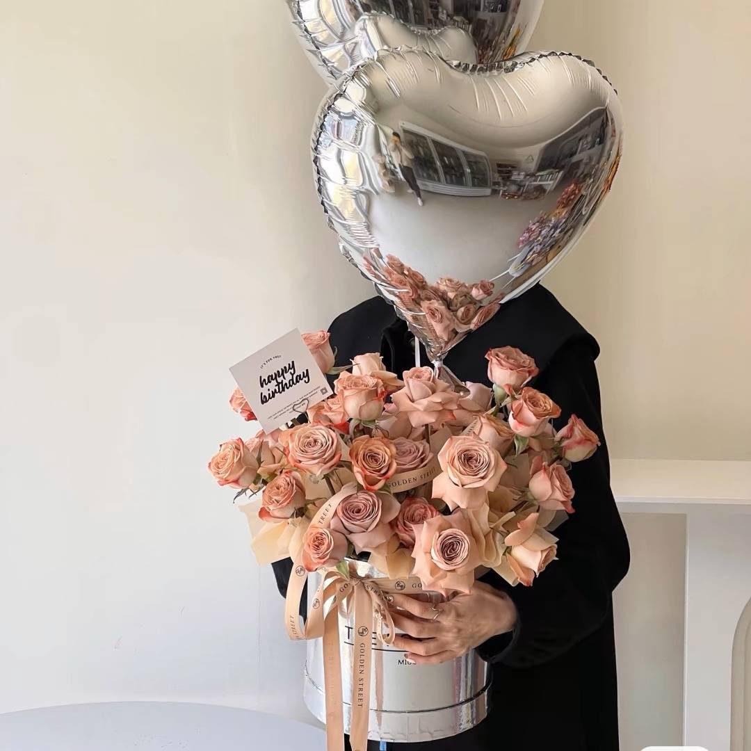全国网红气球抱抱桶卡布奇诺玫瑰花束鲜花速递同城