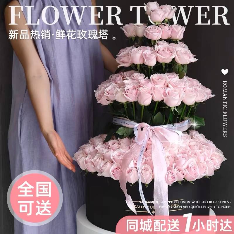 99朵玫瑰塔抱抱桶花束生日鲜花速递同城配送女友