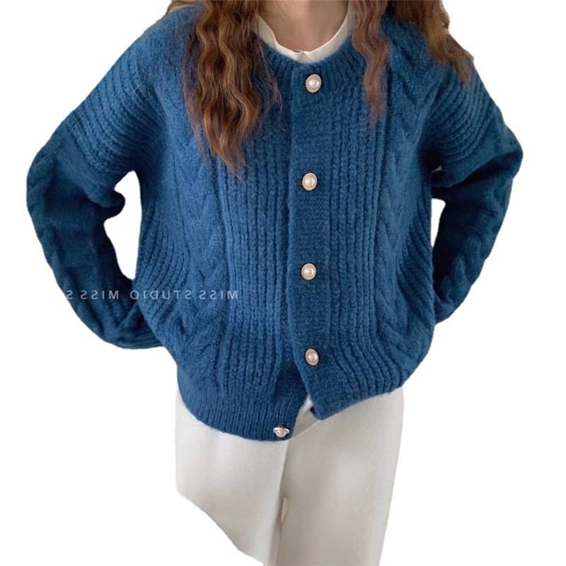 粉色系纯色麻花绞八毛衣女外套2022新款宽松软糯气质针织开衫女装