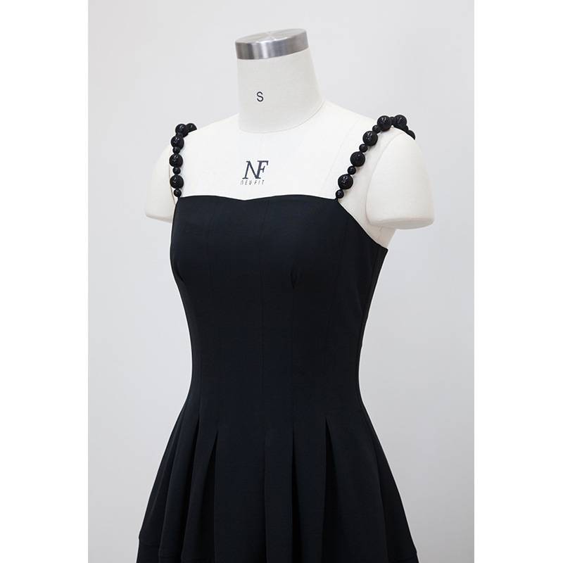 2021秋冬新品简约性感小黑裙长裙女优雅串珠吊带修身收腰连衣裙