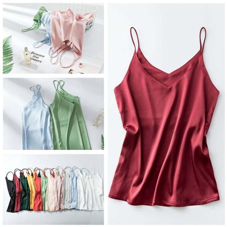 新款仿真丝缎面吊带背心女宽松大码打底衫外穿内搭上衣无袖背心潮