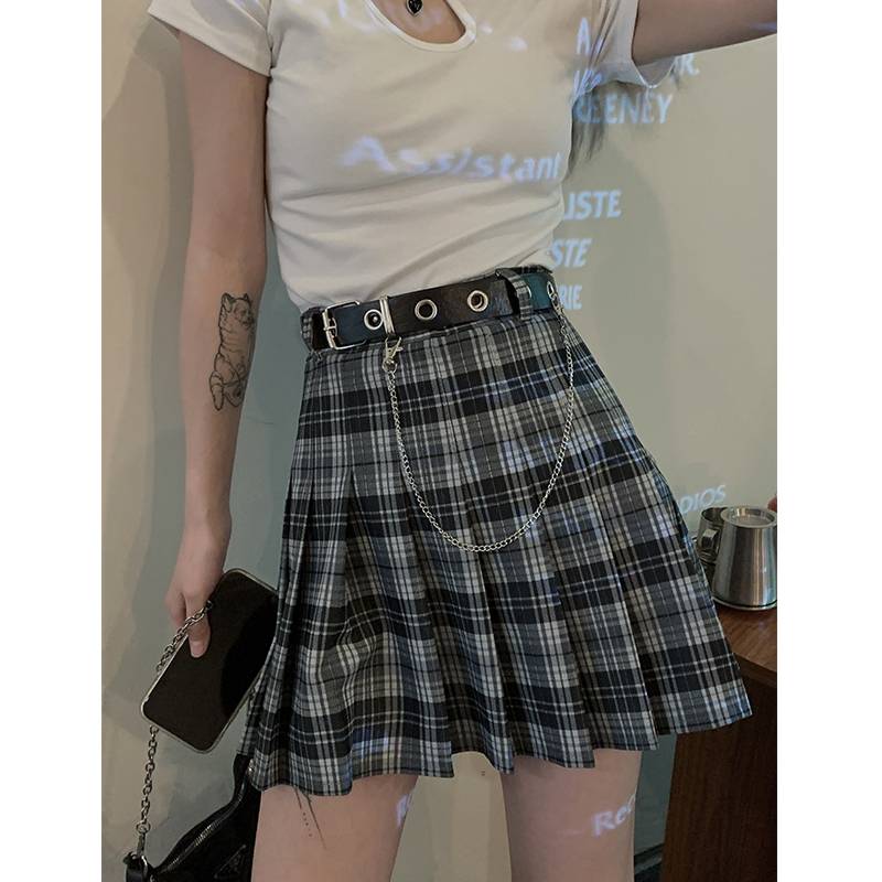 大sim 格子半身裙女显瘦高腰百褶裙短裙2021年夏季新款百搭A字裙