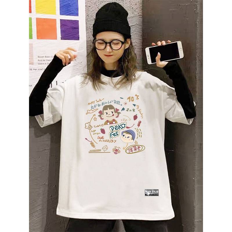 不二家联名t恤女原宿港风chic夏季纯棉宽松小众设计感短袖ins潮牌