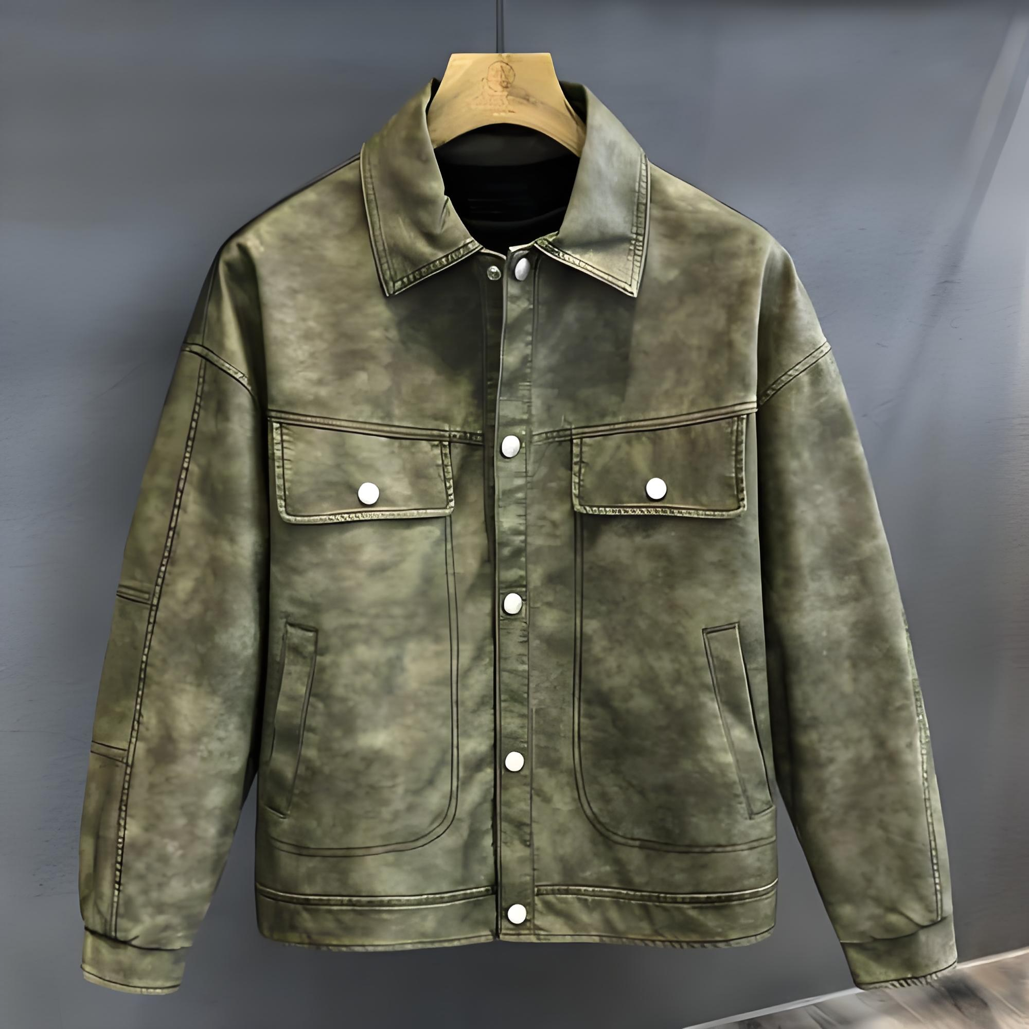 意大利高端阿美咔叽美式复古真皮做旧皮衣男士外套