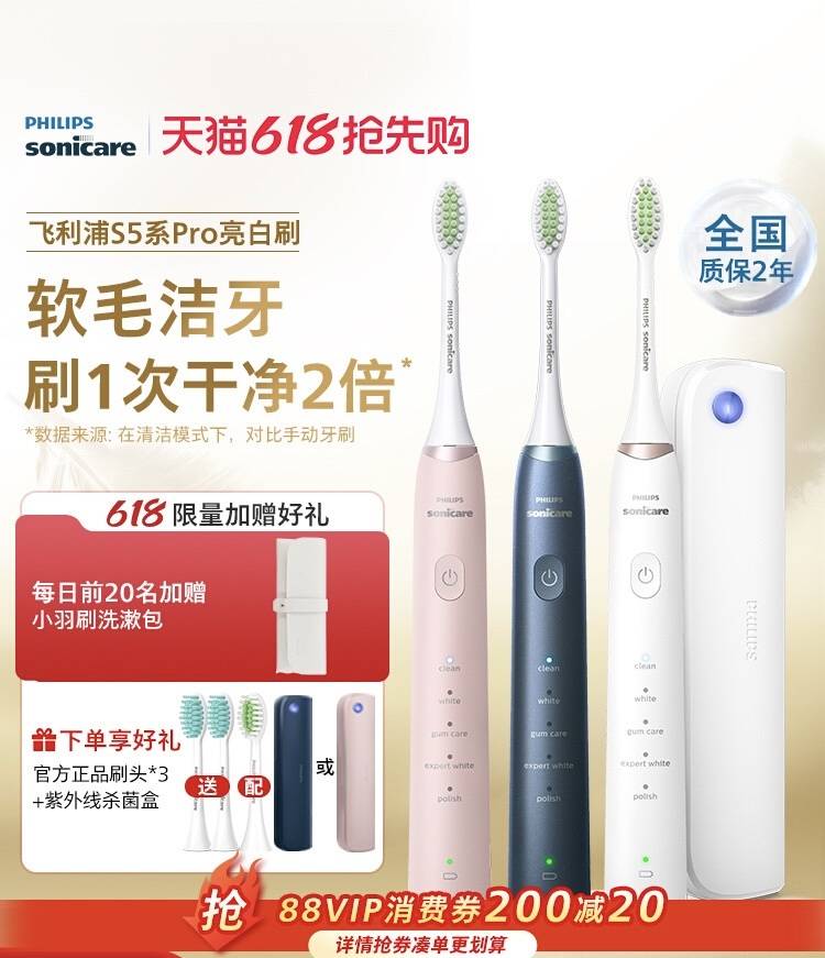 【肖战推荐】飞利浦电动牙刷888软毛亮白刷