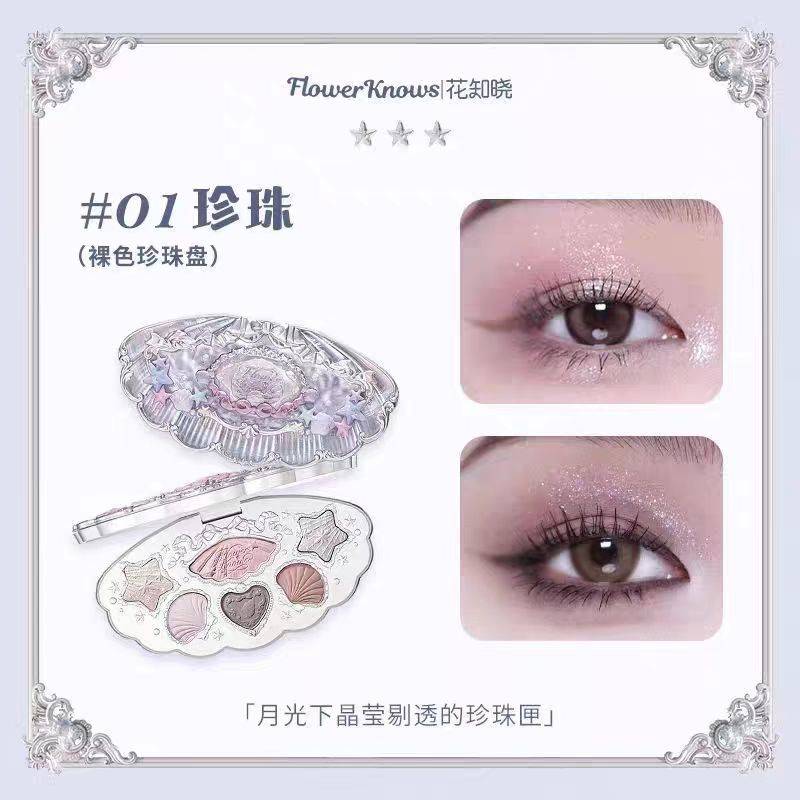 3. 花知晓#01珍珠眼影 裸色珍珠盘 贝壳雕花设计 清透碎钻眼妆