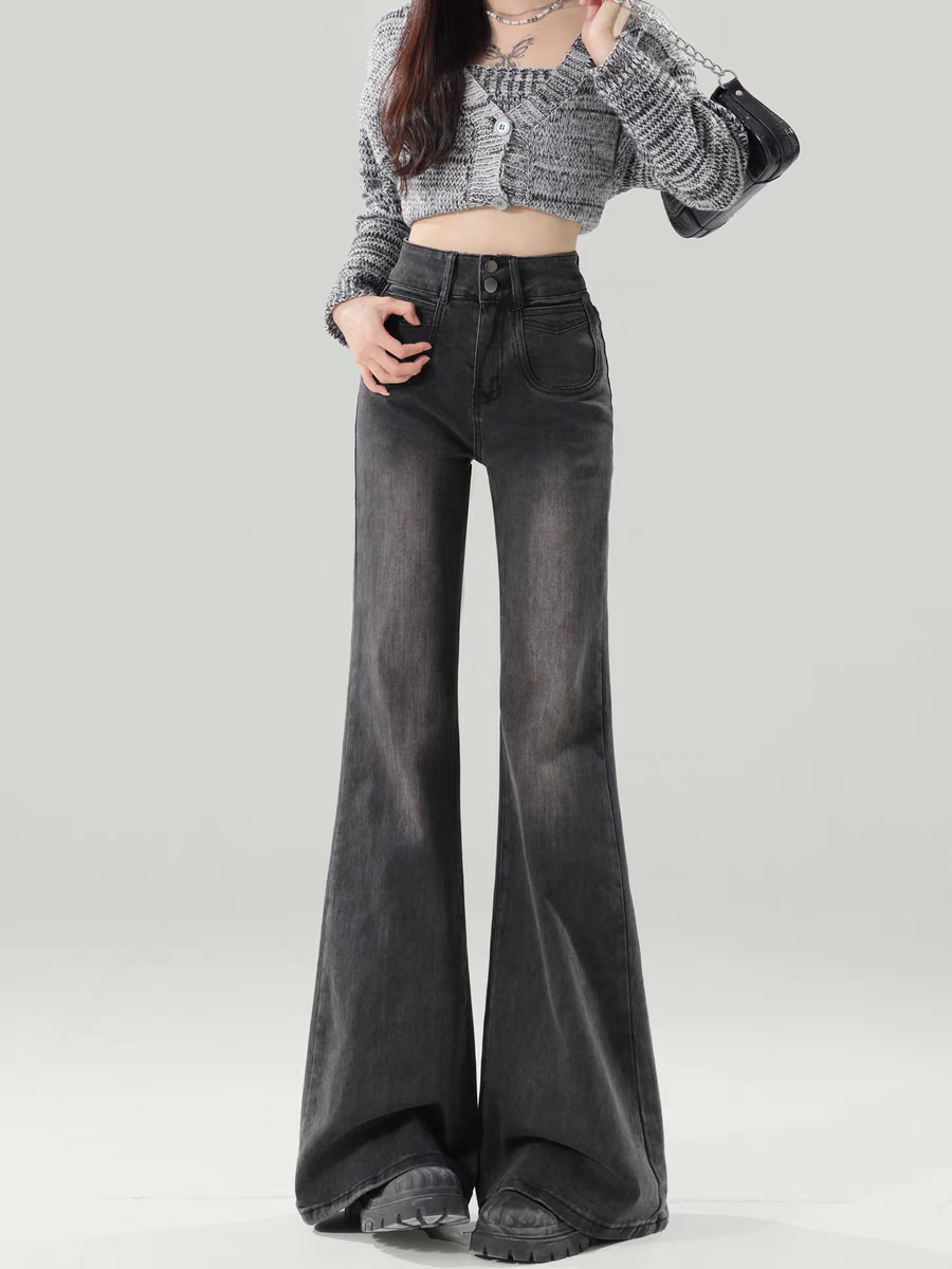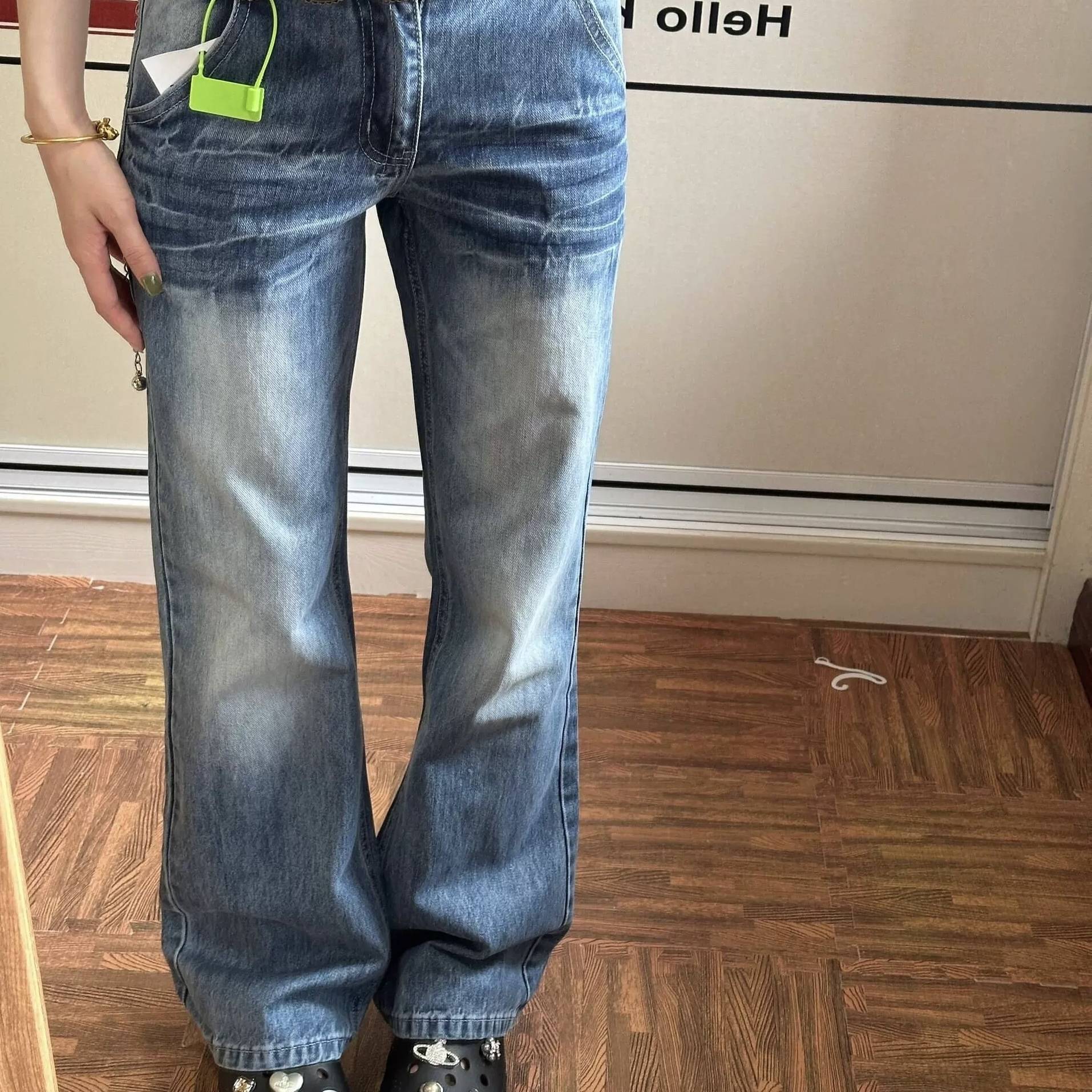 复古微喇牛仔裤女秋季裂纹辣妹低腰美式不贴腿