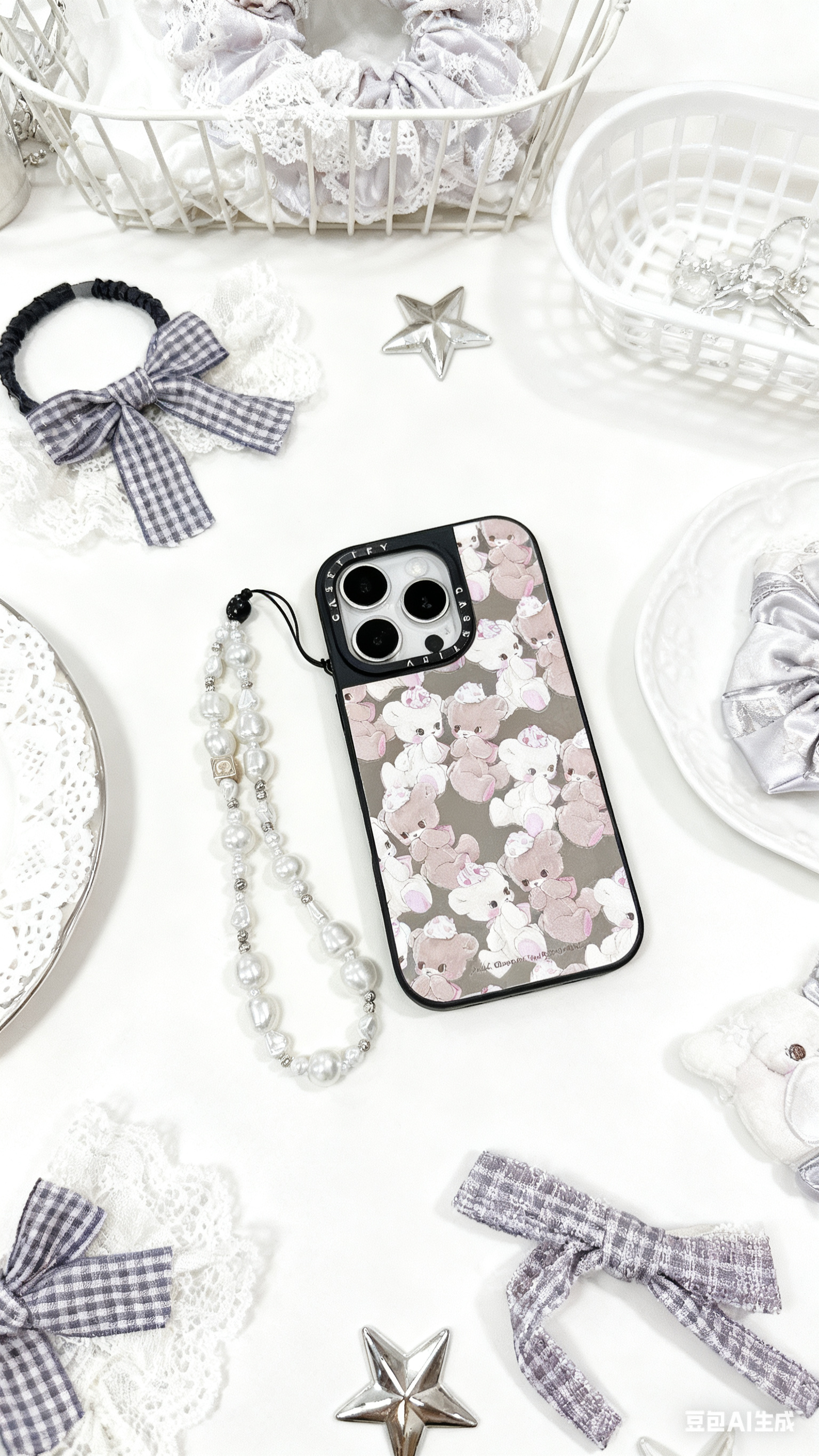 韩系ins白松星星小熊手机链条挂饰耳机壳挂坠ccd挂件手腕挂件防丢韩系ins白松星星小熊手机链条挂饰耳机壳挂坠ccd挂件