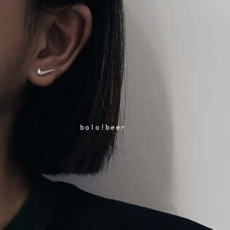 对勾运动风胜利耳钉暗黑港风反勾蹦迪中性钛钢不掉色男女耳环耳饰