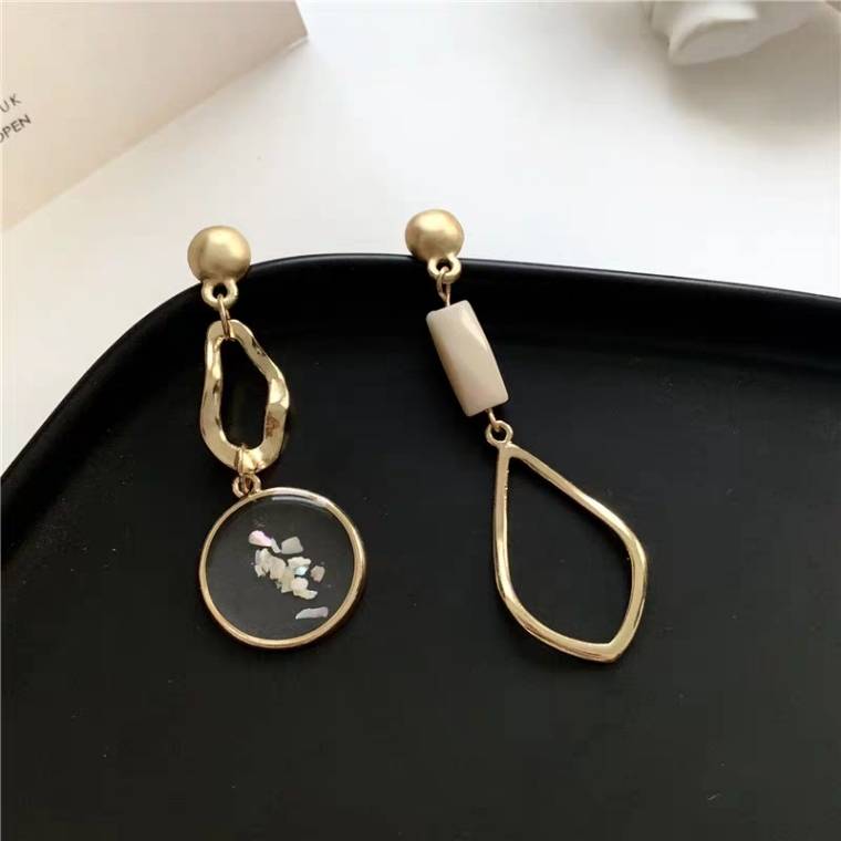 S925银针韩国气质简约不对称贝壳几何金属圈磨砂耳钉长款耳环A123
