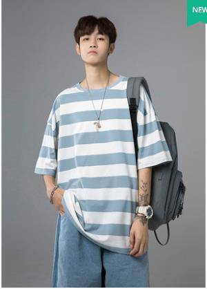 港仔文艺男短袖t恤男潮牌简约百搭韩版条纹宽松男生ins潮流上衣夏