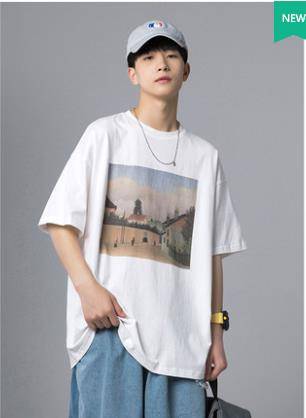 港仔文艺男 短袖ins新款韩版宽松潮流潮牌印花圆领半袖潮男T恤衫