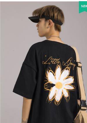 港仔文艺男ins风潮流百搭宽松小雏菊印花短袖T恤韩版潮牌五分袖潮