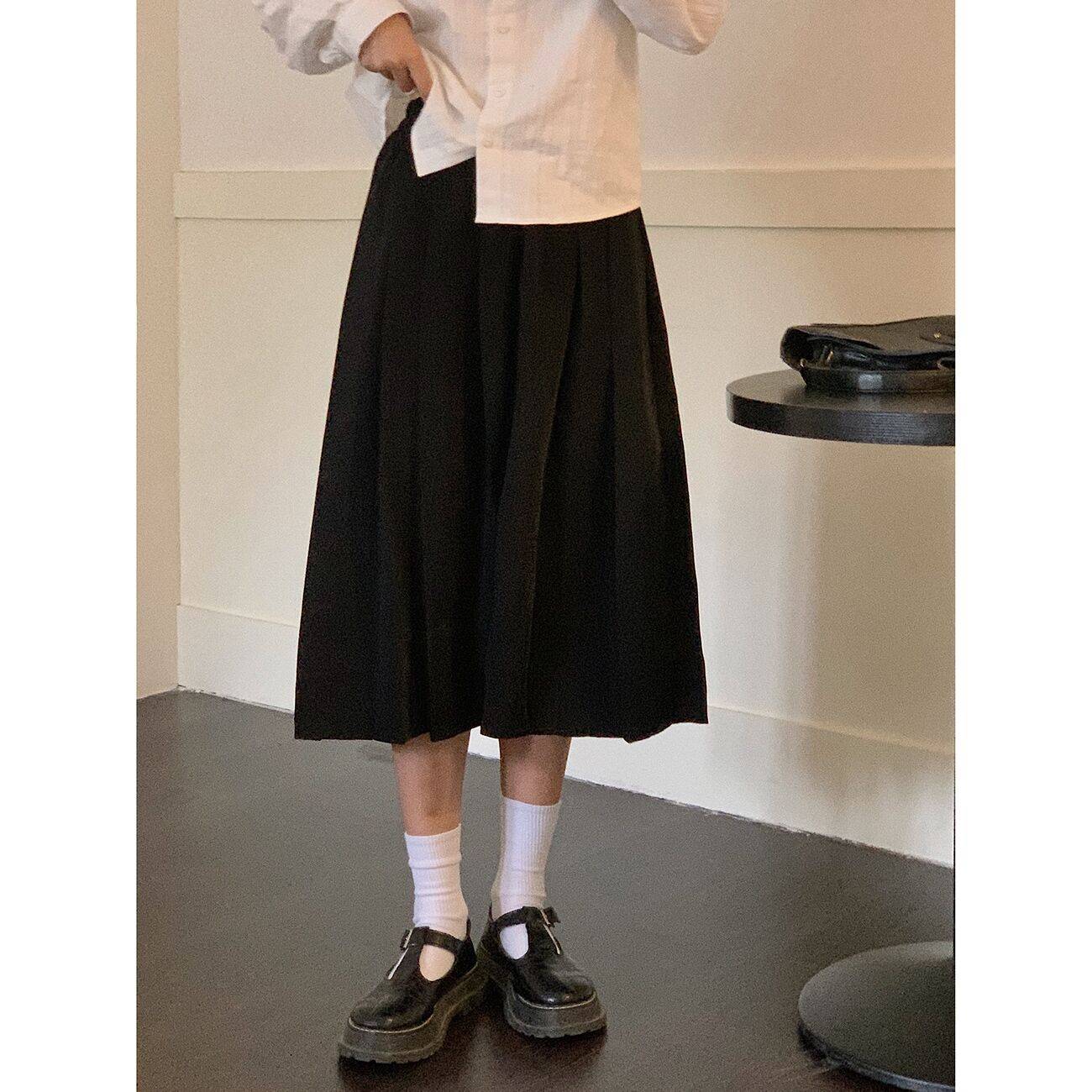 显瘦黑色黑裙A字半身裙春秋中长款2021新款复古气质群女