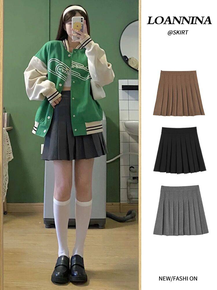 百褶裙高腰短裙秋冬2021新款春秋A字裙加长半身裙