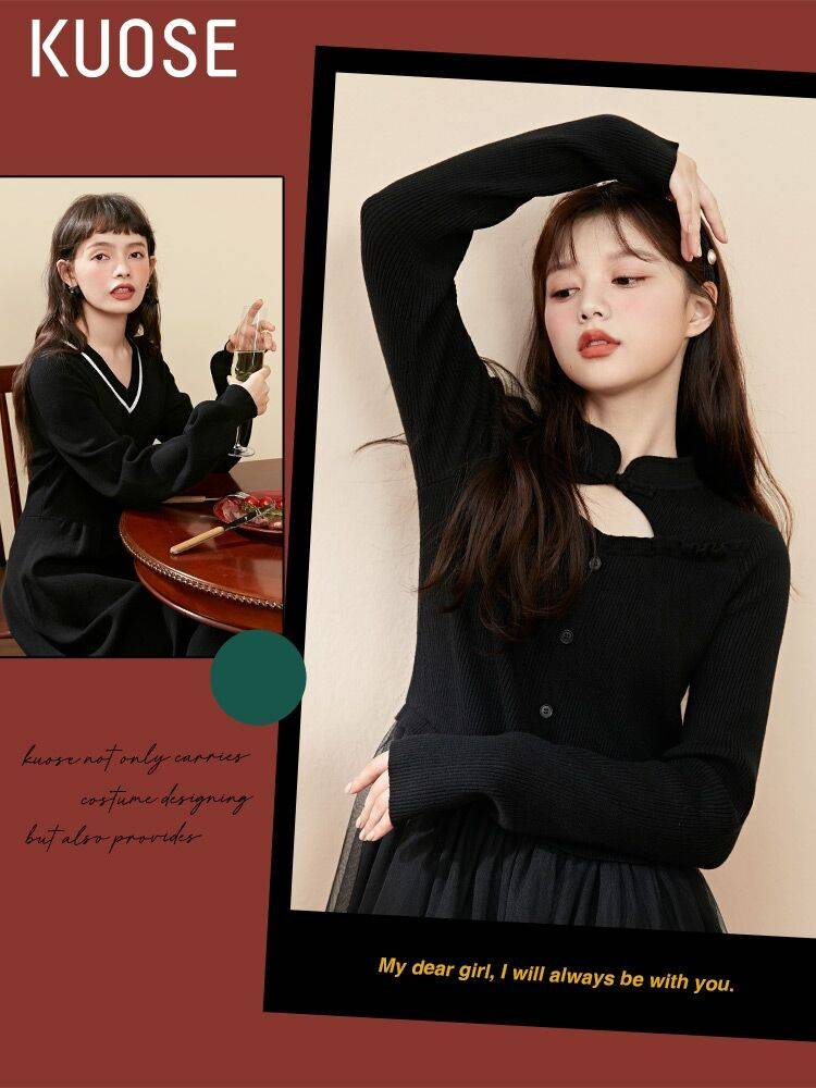 新款秋冬长款内搭黑打底毛衣长裙