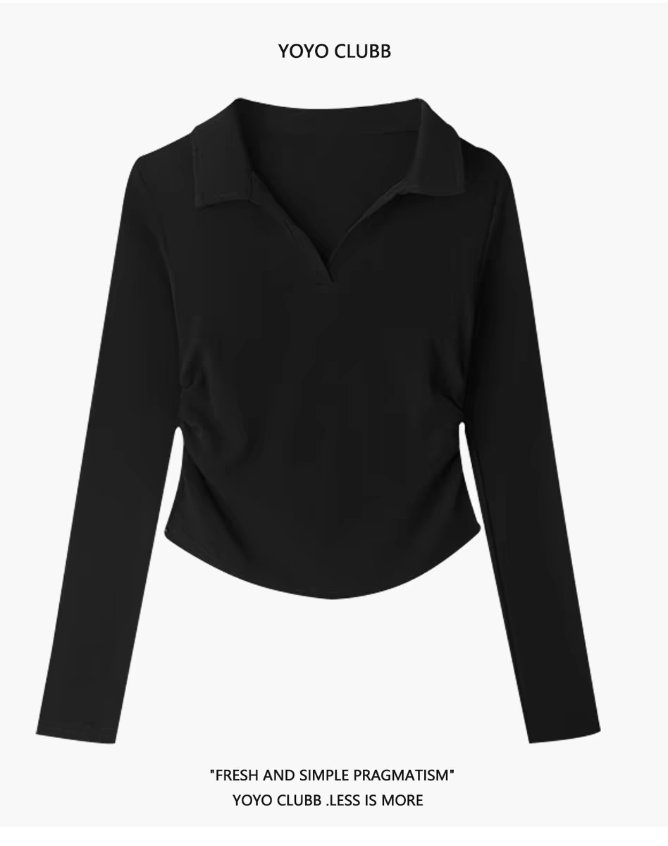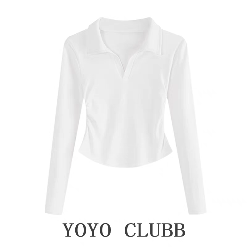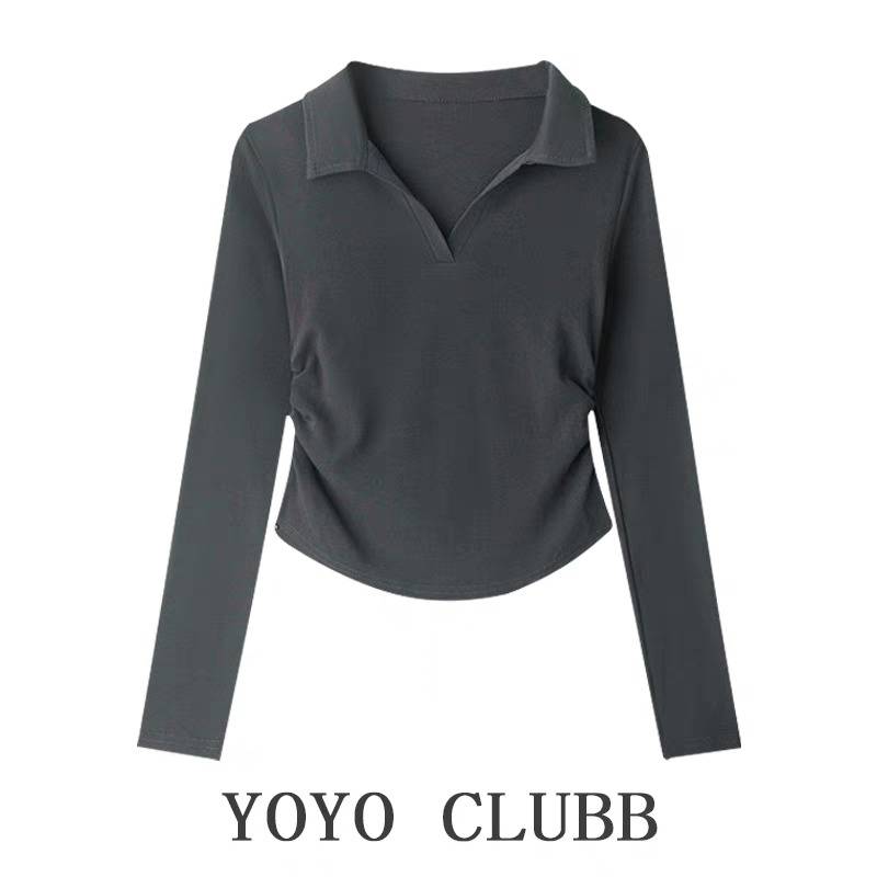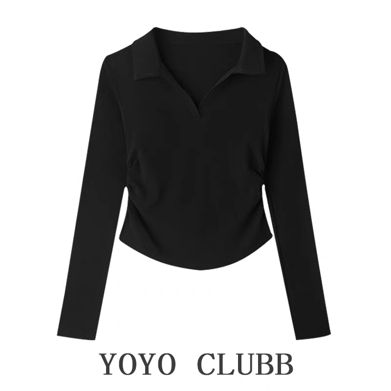 YOYO CLUBB秋季不规则正肩长袖T恤大码辣妹显瘦设计感polo领上衣