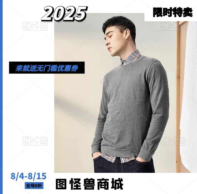 2025春款男装 仿羊羔绒针织男式卫衣 圆领纯色卫衣男宽松