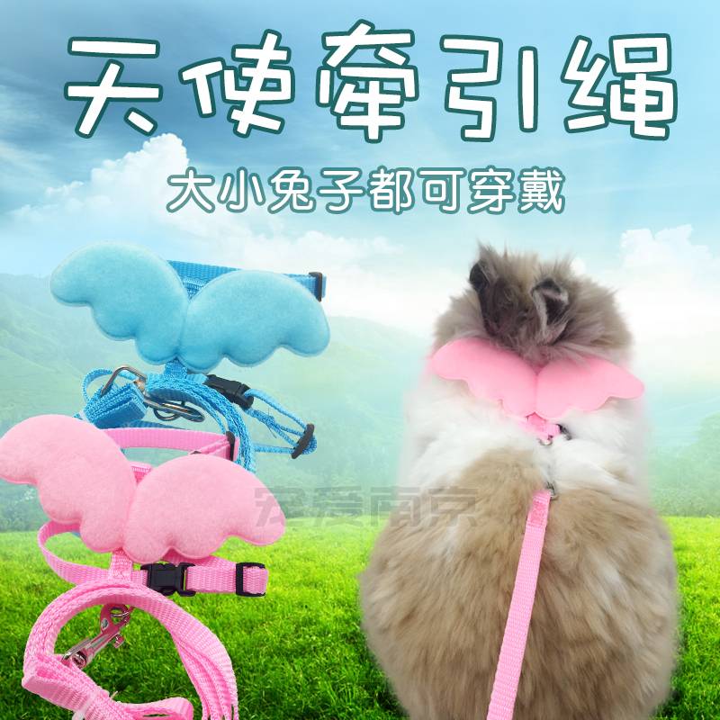 宠物牵引带 天使翅膀遛兔绳 兔子牵引绳可伸缩调节长度 胸背带
