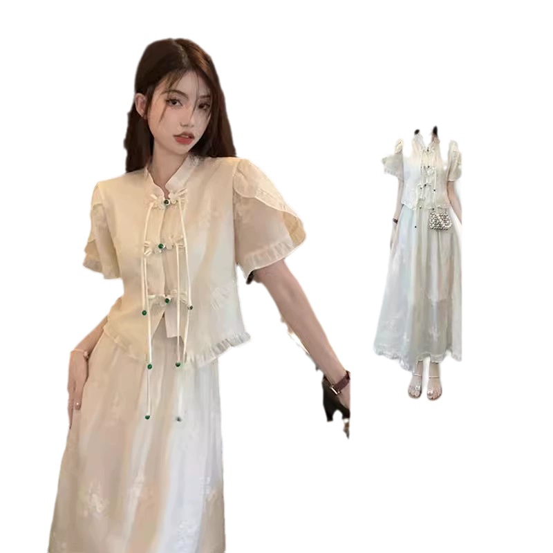 新中式辣妹改良旗袍盘扣国风穿搭微胖龄连衣裙子网红套装女夏季