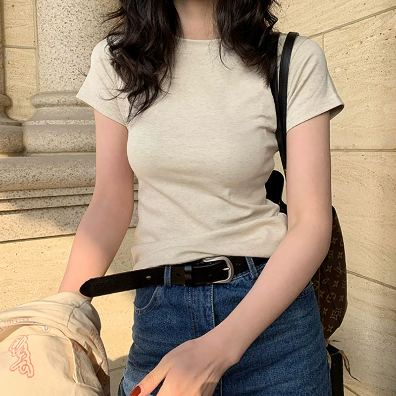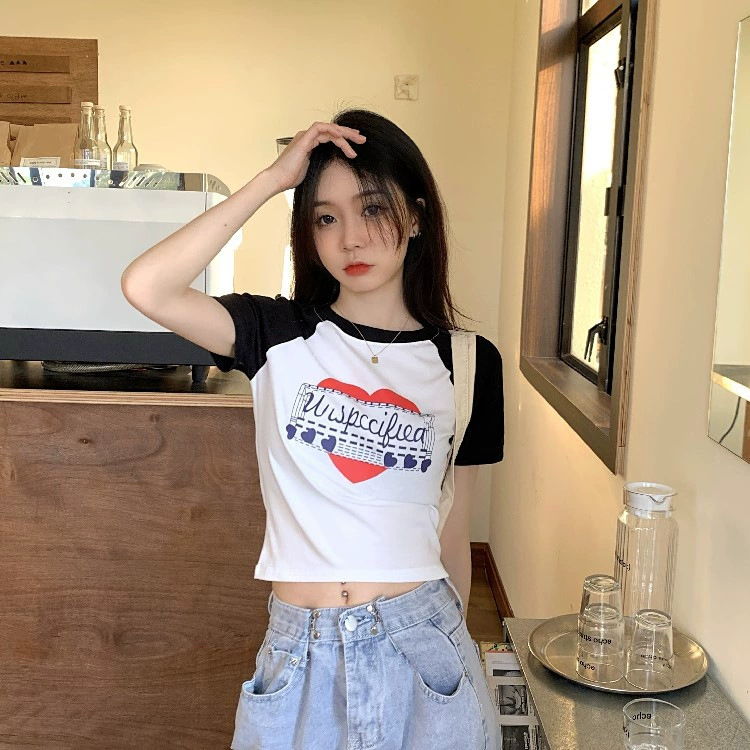 新款美式辣妹圆领T恤女短款修身显瘦印花短袖夏季上衣ins
