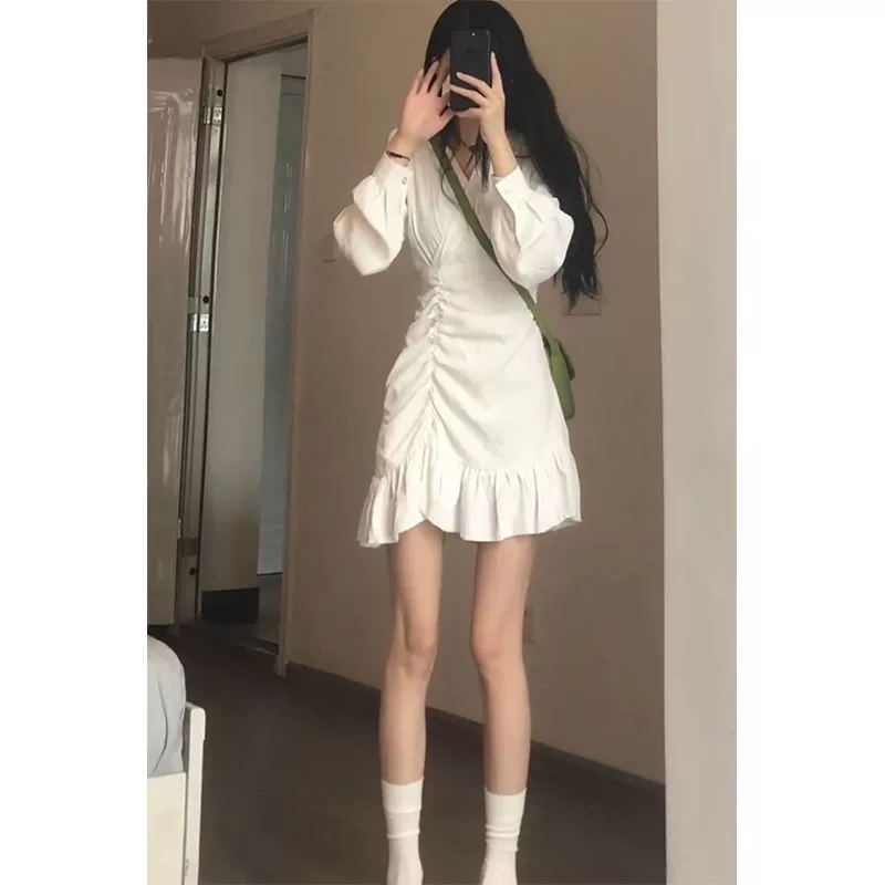 收腰连衣裙法式甜美温柔风不规则小个子气质显瘦秋季短裙