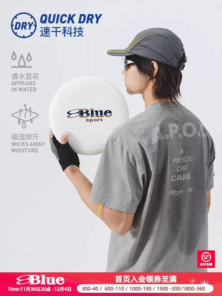 NOTHOMMEBLUE蓝岐水隐吸湿速干水显印花户外运动T恤情侣短袖男潮