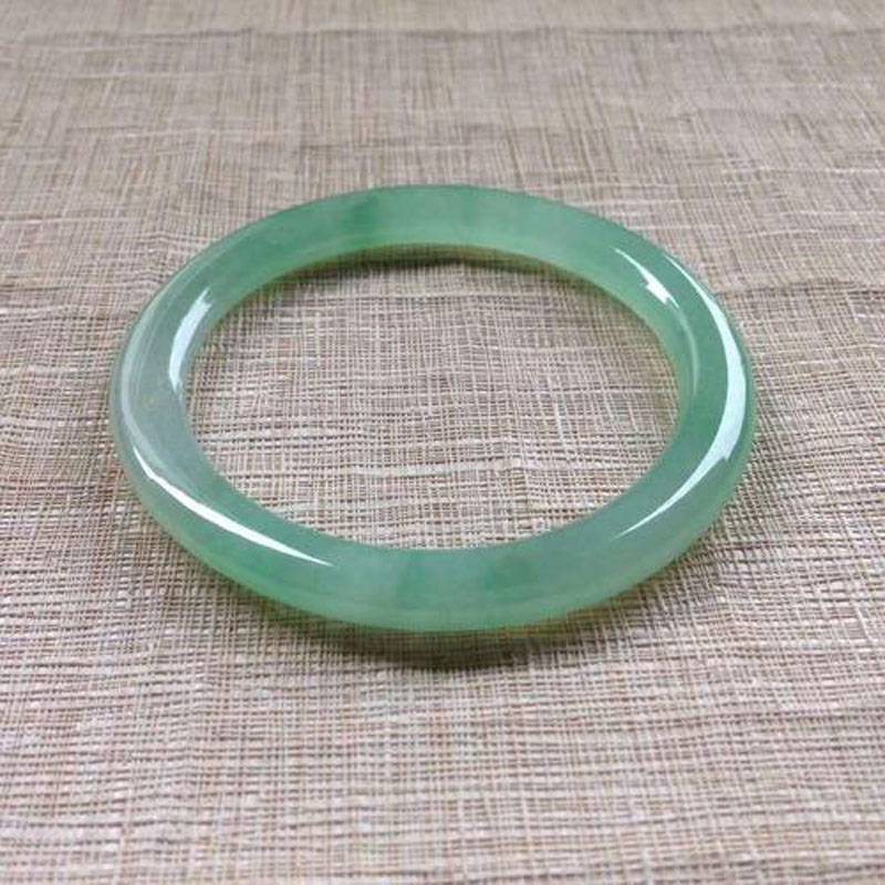 天然缅甸冰种圆条翡翠手镯飘绿花正圈手镯玉镯子女款专柜正品