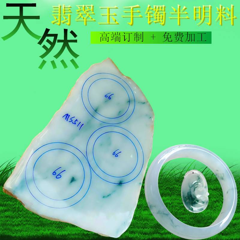 天然翡翠手镯 冰糯种缅甸原石高端玉手镯女贵妃阳绿镯子飘花