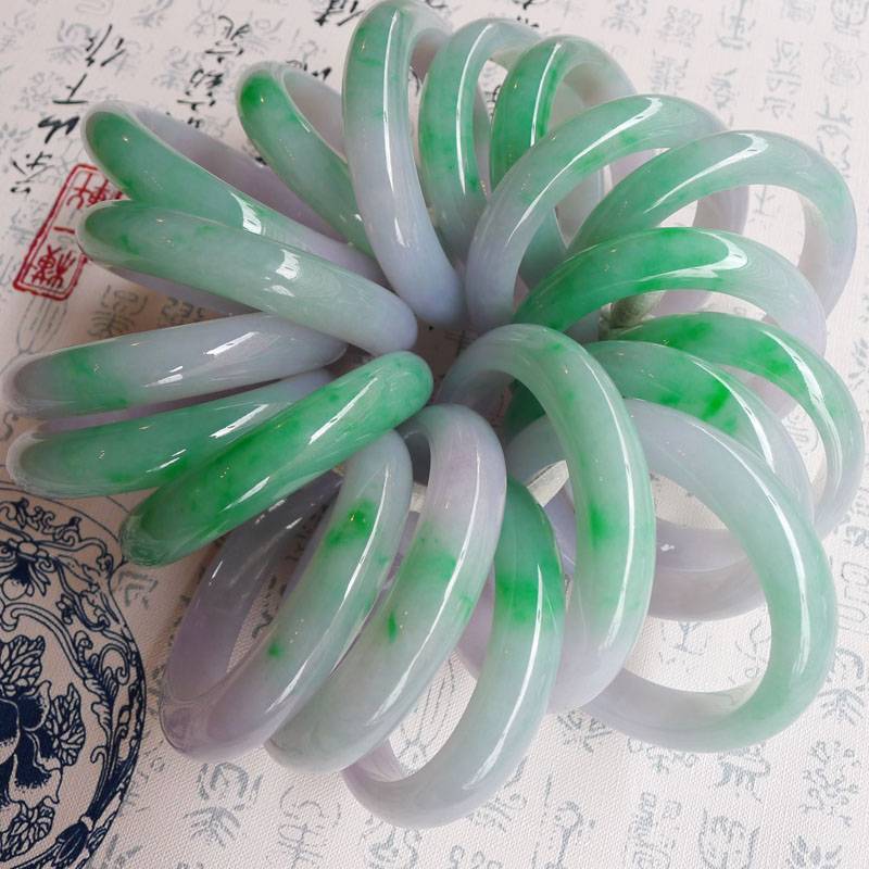 正品天然翡翠原石手镯冰糯种飘花玉手镯女款阳绿紫罗兰玉镯子玉石