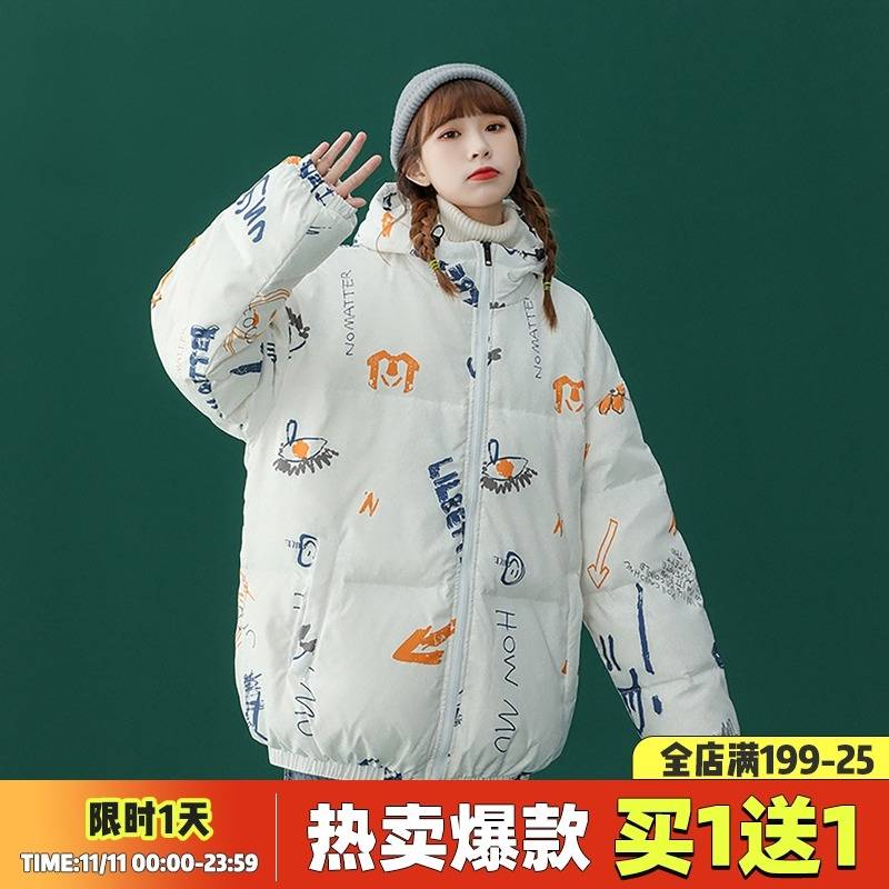羽绒服女2021年款冬季日系中性风外套ins宽松加厚棉衣面包服