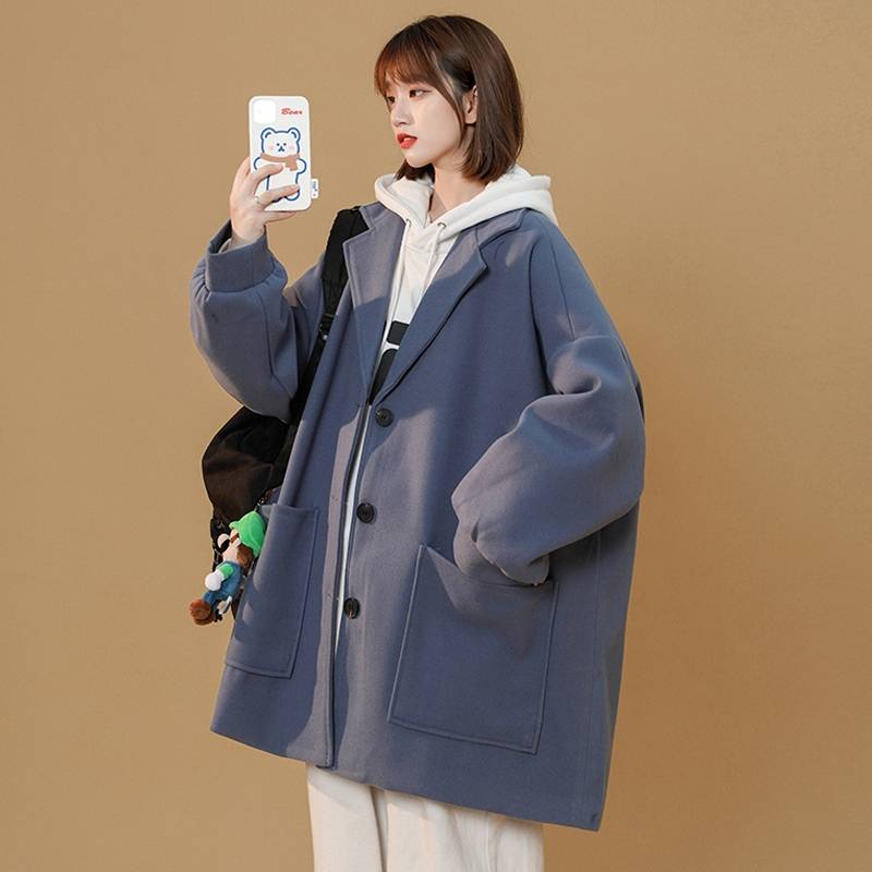 毛呢外套2021新款气质女神范秋冬设计感小众oversize工装呢子大衣