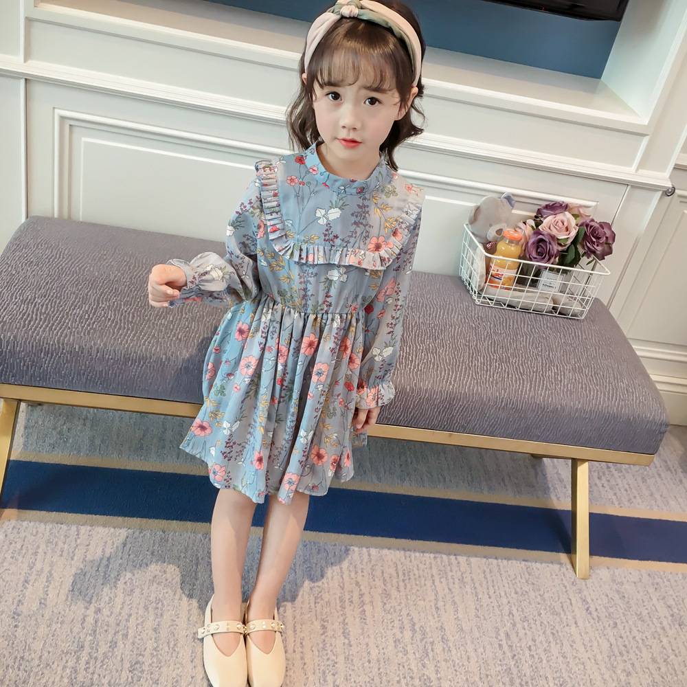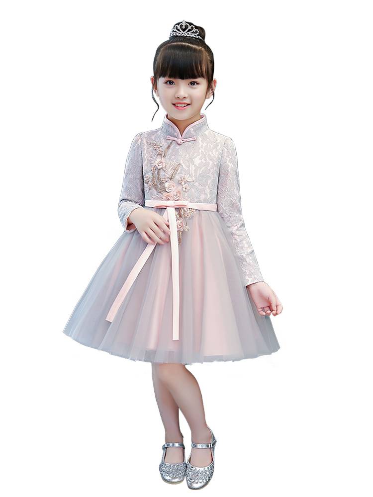 儿童秋装连衣裙新款长袖公主裙前短后长礼服女拖尾女童蓬蓬裙洋气